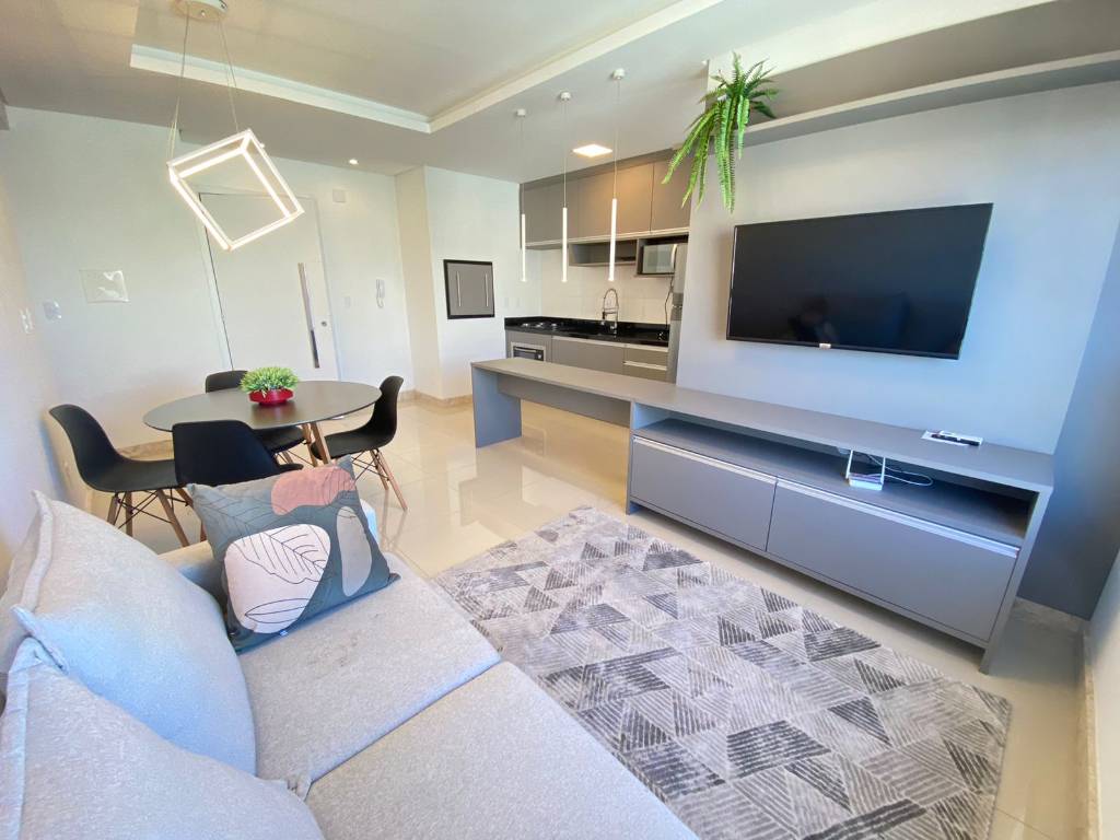 36x direto! Localização nobre frente Praça, hall de entrada finamente mobiliado e decorado, zelador permanente, 2 elevadores, portão e porteiro eletrônico, luz por presença nos corredores e garagem, água quente, gás central, piscina, salão de festas, temos este belo apto. Decorado, com espera para split nos ambientes, esquadrias em alumínio anodizado, composto por 2 dormitórios, suíte, banho social, cozinha americana, área de serviço, sala de estar e jantar, churrasqueira, vista toda liberada, box para carro.
