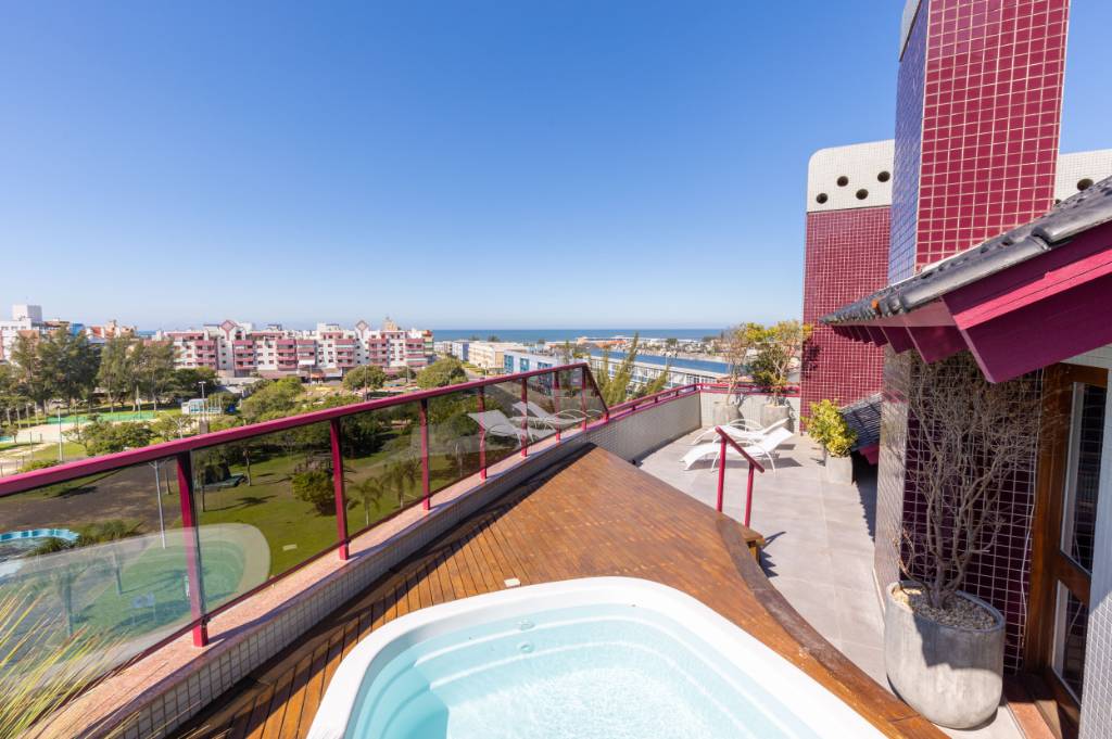 Cobertura duplex de altíssimo padrão, no centro de Atlântida, finamente mobiliada e decorada, à 300 metro da praia, consta com 4 dormitórios, sendo 1 suíte master + dependência completa, reversível para suíte de hóspedes, área social com 6 ambientes, área externa ensolarada e com uma vista deslumbrante para o mar, 100% reformada, totalmente mobiliada, decorada e equipada. Com piscina e sauna privativas. Qualidade de vida e constante valorização. Em uma praia com ótimas opções para toda família, seja para passar férias ou viver confortavelmente sentindo a brisa do mar, chegou a hora de realizar os seus sonhos em um dos pontos de maior valorização do Litoral Norte Gaúcho.
