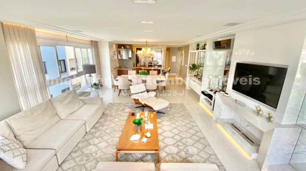 Belíssimo apartamento finamente decorado de frente para praça Flavio Boianovisk! Apartamento de frente, com uma linda vista para o mar, mobiliado e decorado, de 4 dormitórios, sendo 2 suítes, lavabo, banho social, sala de estar, lareira, cozinha americana, área de serviços, 2 box de garagem.