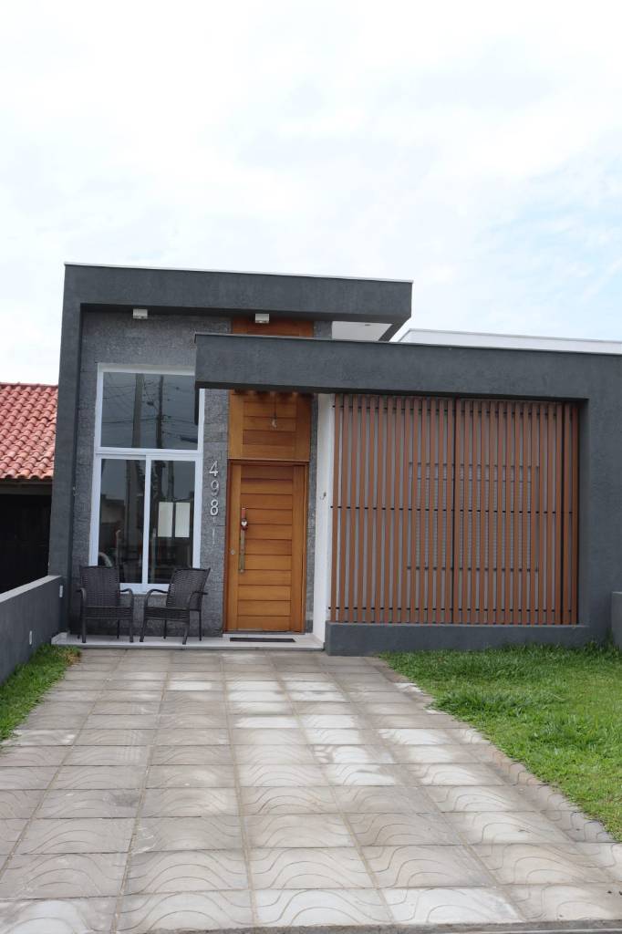 CASA DESIGN MODERNO c/ brises e Pergolado São 2 dormitórios sendo 1 suíte; Banho Social; Orientação solar FRENTE oeste, FUNDOS Oeste; Cozinha; Churrasqueira; Área de serviço independente; Mobiliada; á 1 quadra do Mar. Área PRIVATIVA 65, 91m², Terreno 6, 5x27. Porta Entrada Pivotante; Aberturas em Alumínio (linha supreme); Portas internas em MDF; Porcelanato e soleiras em Basalto; Água quente e gás central; Espera para ar condicionado; Banheiros com iluminação Natural.
