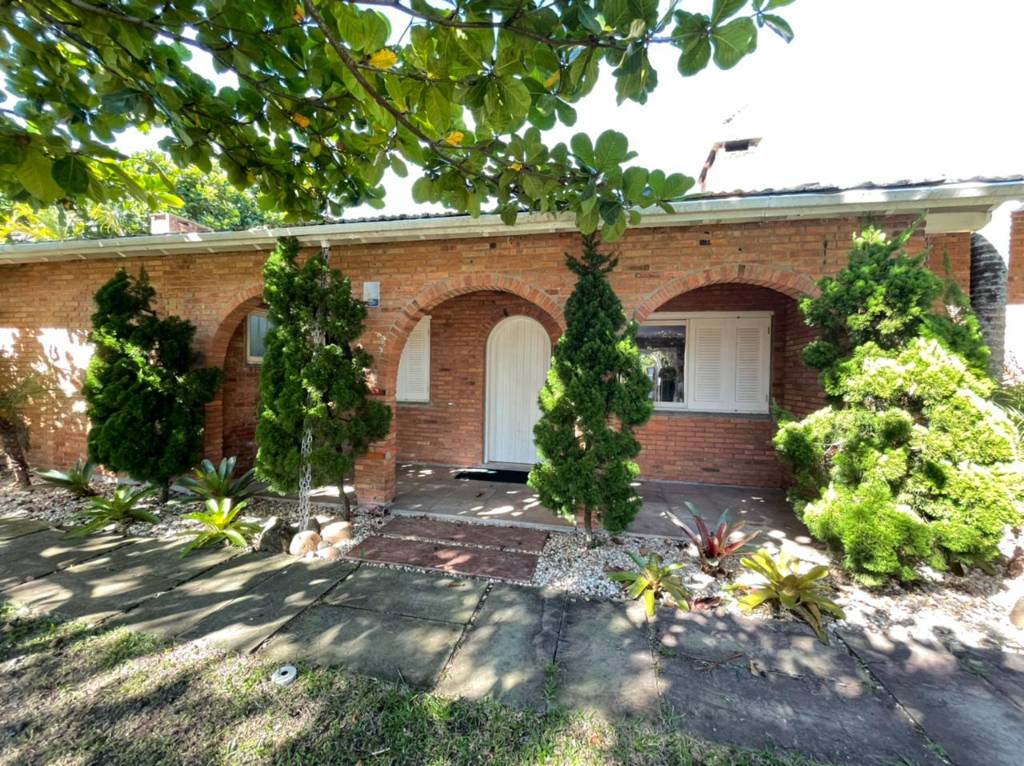 Casa térrea de 275m² de área, construída sobre três terrenos de 18 x 30 cada (total de 1620m²) com cinco suítes, dependência de empregada completa, banho social, espaço gourmet, cozinha separada, lavanderia separada, lareira, garagem para dois carros, playground para crianças, residência toda arborizada, com muita sombra, árvores frutíferas, estilo sítio, mobiliada, churrasqueira.